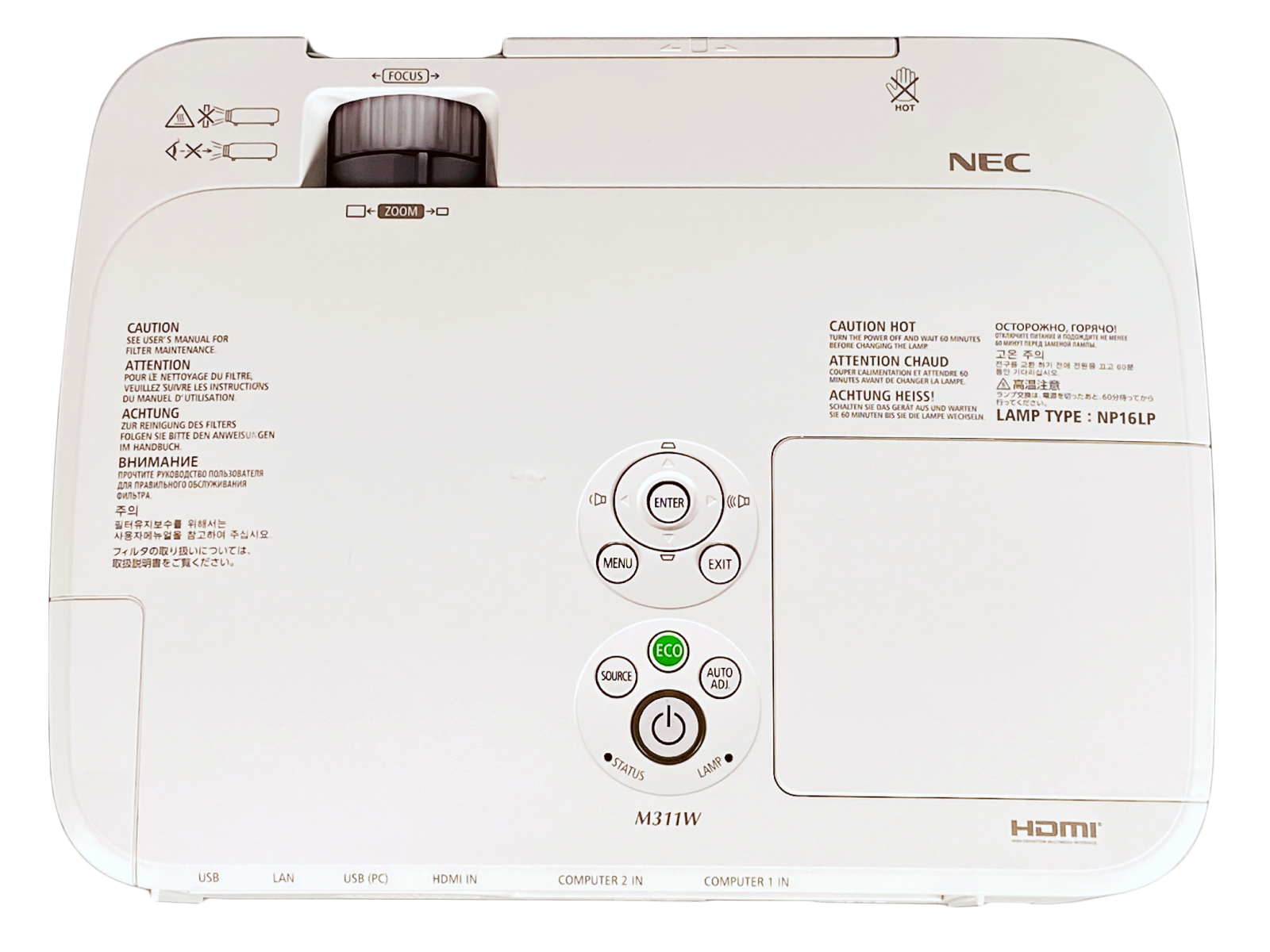 NEC NP-M311W 3LCD Projector 3,100 Lumens Full HD WXGA HDMI